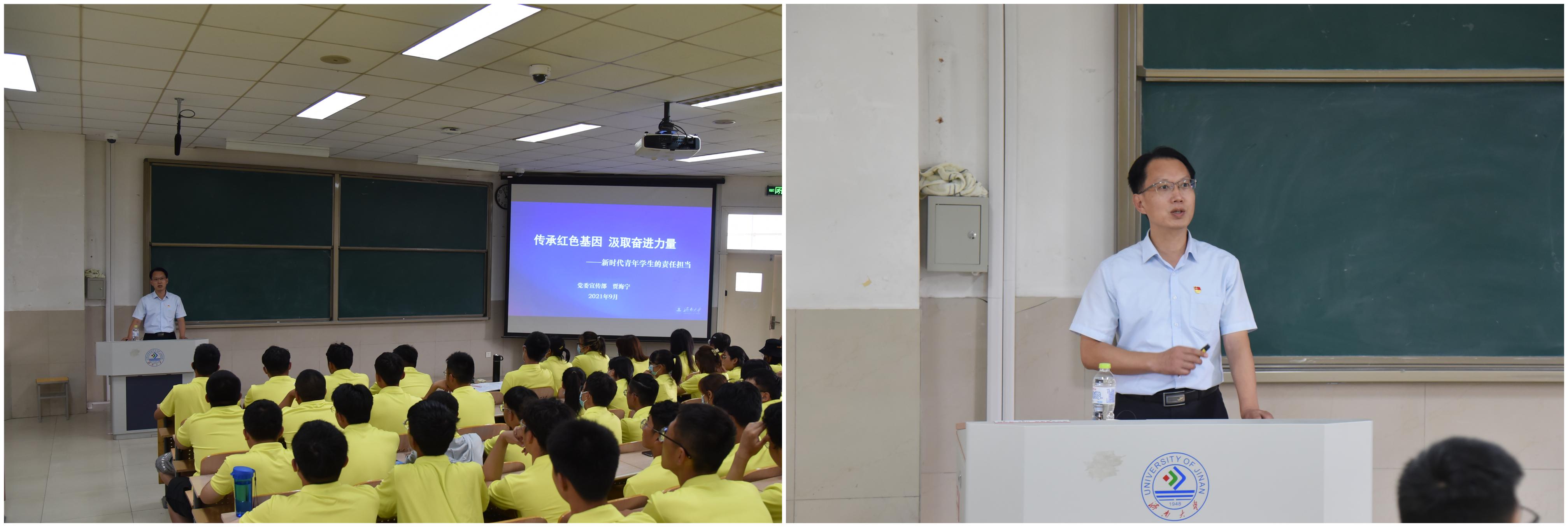 贾海宁首先代表学校欢迎2021级新生的到来,他以“传承红色基因,汲取奋进力量——新时代青年学生的责任担当”为题,从四个方面展开讲座:一是汲取力量,做堪当民族复兴重任的时代新人。贾海宁鼓励同学们学党史、学校史,要从中国共产党建党以来的百年征程中感悟初心使命,从肉视频