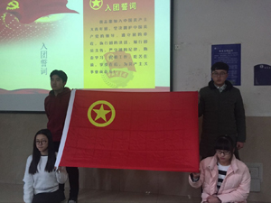 全体团员青年通过短视频重点回顾了十九大中习近平总书记对青年的要求和期望,同时,主持人向大家深入讲解了八个明确,十四个坚持。视频以团支部学习十九大的精彩瞬间为结尾,引发在场同学深思。会议过程中,团员代表曹剑同学与于虎生同学通过讲述毛泽东同志和李克强的成长故事,号召大家向榜样学习,做新时代好青年。故事引起了阵阵共鸣,此时,团支书引导全体共青团员再次面对团旗宣读入团誓言,同学们将自己的爱党爱国情怀融入誓言,宣读过程中字字慷慨激昂、掷地有声。会议最后,王立明同学与何圆开同学分别从对十九大精神的理解以及共青团员如何用习近平新时代中国特色社会主义思想武装头脑两个方面谈了自己的感想与学习心得。