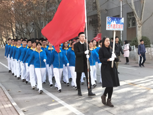 的队伍整齐有序的按照规定路线进行行走,并在行进途中喊出学院的爱国口号。在行进过程中,队伍步伐整齐,口号响亮,大家精神抖擞,充满斗志,所有学生都坚持到达了终点,无人掉队,并获得健步走第一名。