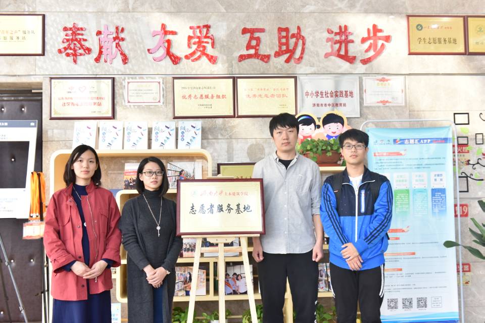 志愿服务基地授牌仪式在济南图书馆举行,济南市图书馆工作人员李德虎老师,学院团委书记白雪飞与辅导员段继燕参加仪式,学生志愿者代表参加此次活动。