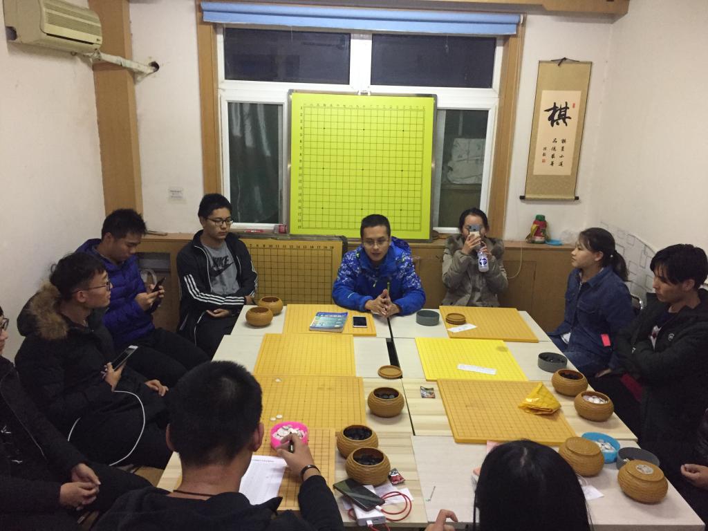 副社长李自立为新社员介绍了围棋的起源与发展、社团历史和成员情况、社团的各项活动等,期间还穿插进行了有趣的游戏环节。台上的自立学长幽默风趣、妙语连珠,台下的社员们表现活跃、积极互动,现场的气氛一度达到顶点。之后,由社长郭宇泽现场为新社员们讲授围棋的基础知识,期间,郭学长将新奇的故事与恰当的比喻结合在一起,生动形象、寓棋于理,新社员们纷纷被郭学长讲授的深刻而有趣的内容所吸引,聚精会神、仔细聆听,学到了他们入社以来的第一堂围棋课。最后,由郭宇泽、李自立二位学长希望大家把星空围棋社当成永远的大家庭,此外,告诫大家珍惜时光,努力在大学寻找并实现自己认为有意义的事情。